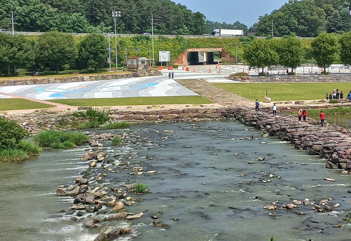 예전에 신랑이 출장 다닐때 고속도로에서 보면 이렇게 커다랗게 《천년의 숨결 농다리》라는 광고판을 보고 이곳이 어떤 곳인지 궁금해서 꼭 한번 가보고 싶다길래 찾게 된 곳이에요. 이 사진은 이번에 저랑 갔을 때 제가 조수석에서 찍은 거예요~ 빠르게 달리는 차 안에서 이 사진 하나를 얻기 위해 여러 장을 찍은 결과 나온 사진이에요~😄
