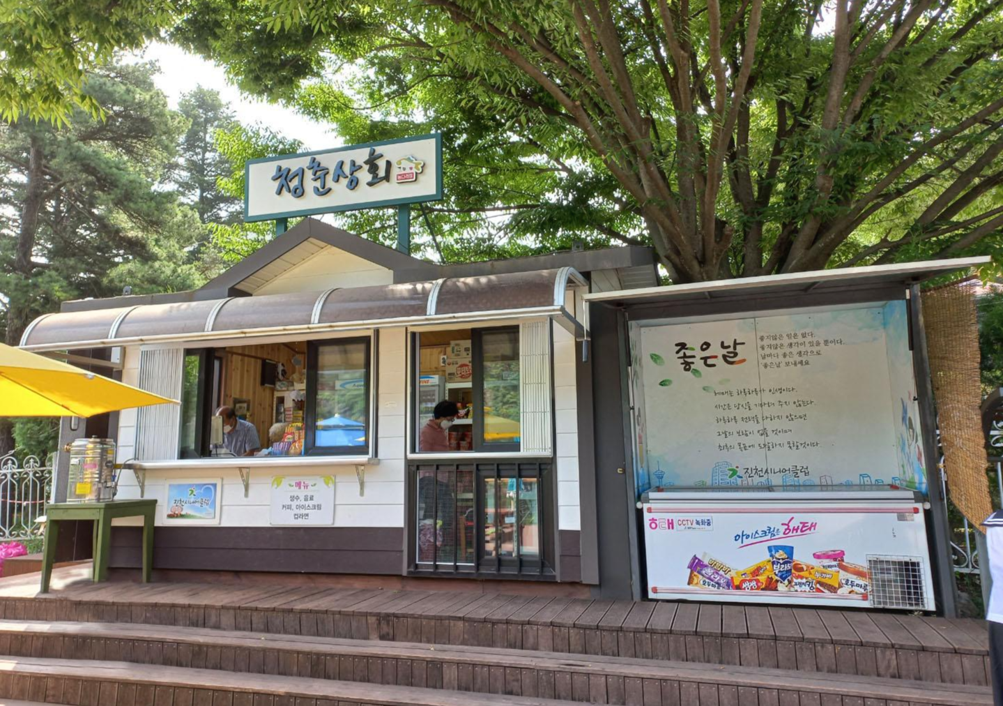 시니어카페도 있다 해서 커피와 음료만 파는 카페인 줄 알고 카페만 한참 찾았는데, 청춘 상회를 시니어카페라고 하더라고요~ㅎㅎ 청춘 상회에서 시니어분들이 커피도 판매하고 과자며, 아이스크림도 팔고 계시더라고요~