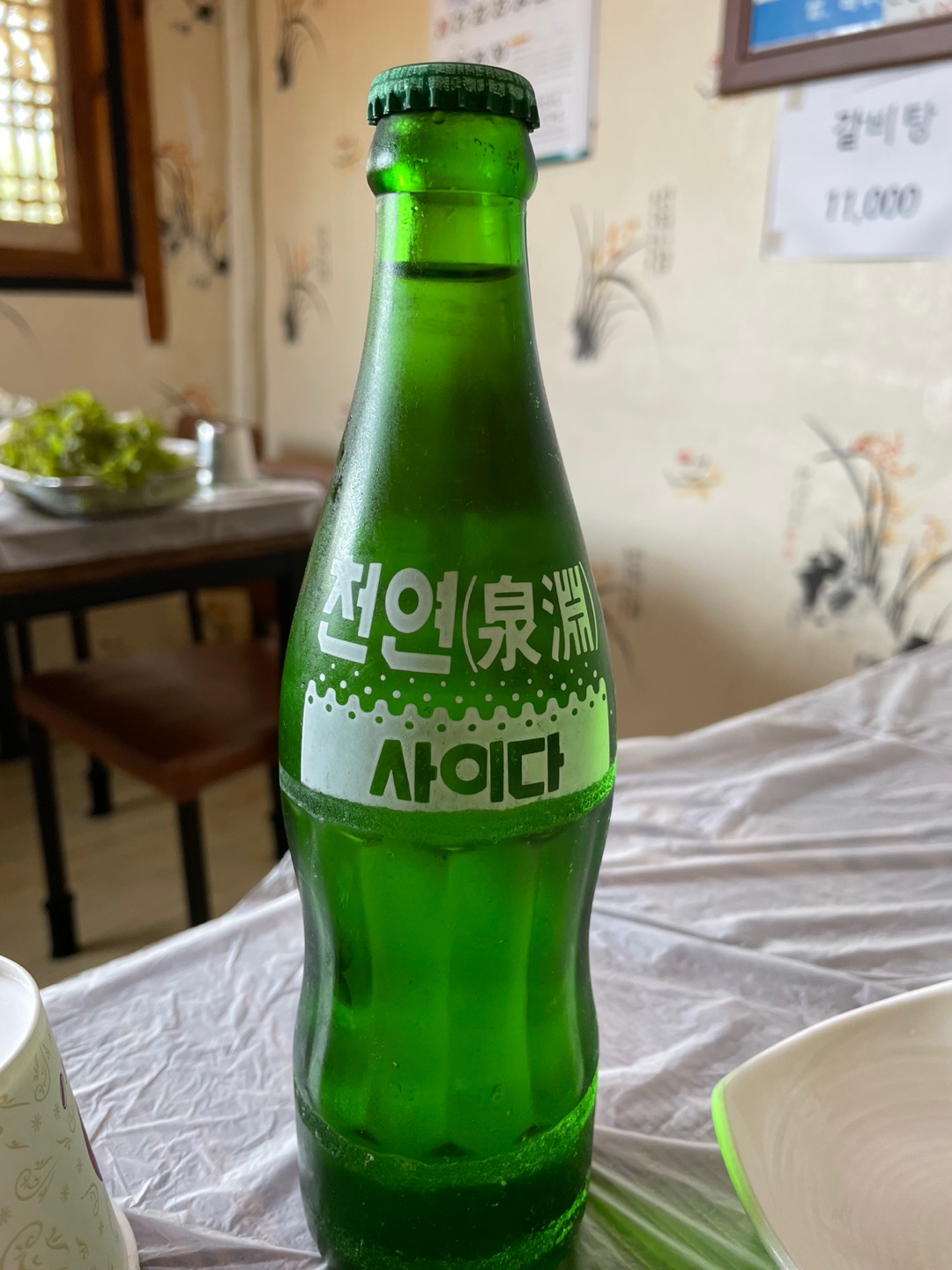 훈제오리를 먹다보니 시원한 음료가 생각이 나서 사이다(1,000원)를 주문했어요~ 다른 음식점보다 저렴하면서 다른 지역 음식점에서는 쉽게 맛볼 수 없는 천연사이다를 주시네요~ 톡 쏘는 맛에 스포츠음료 맛과 조금 비슷한 것 같아요~