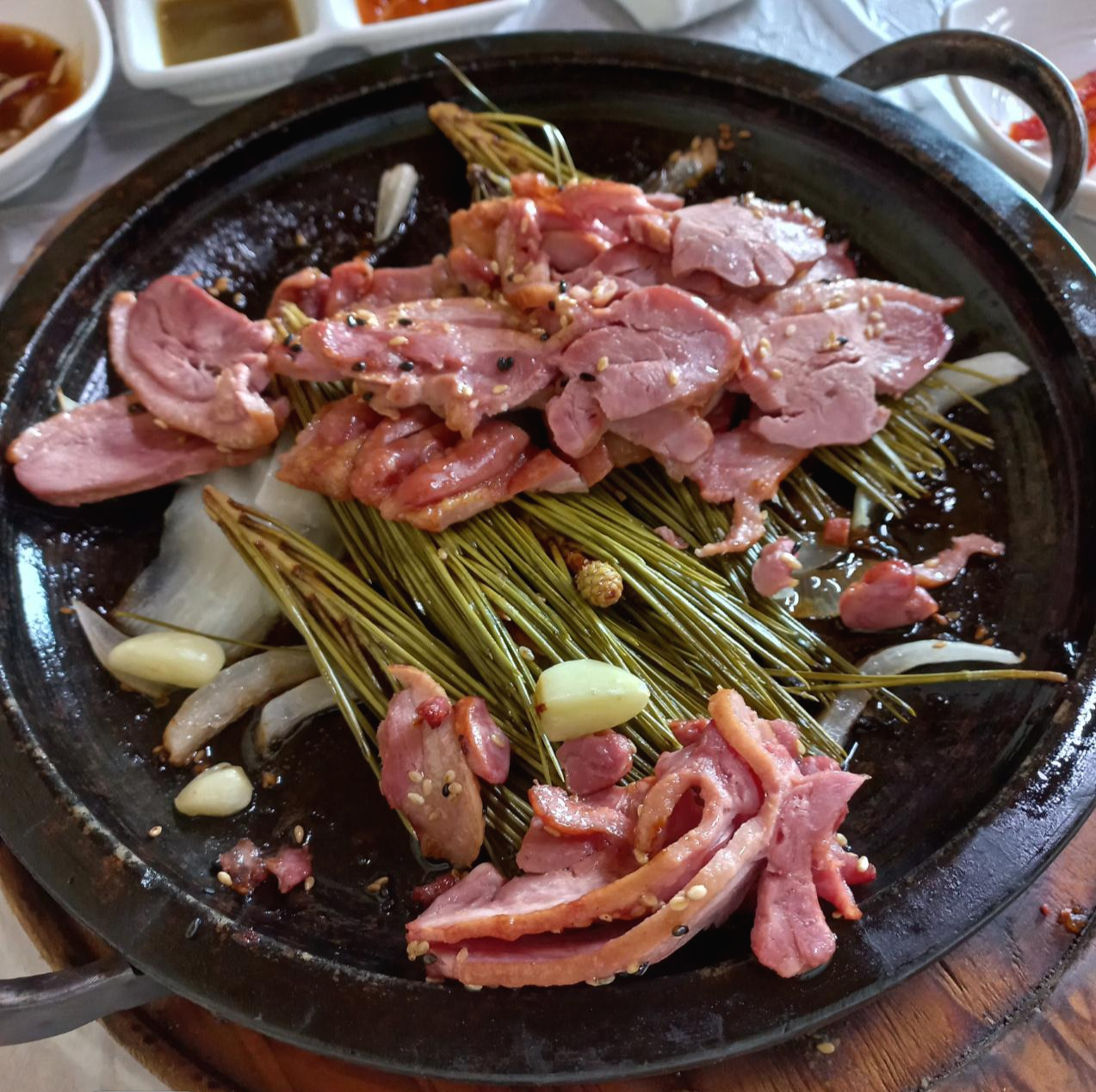 오리고기 밑에는 이렇게 솔과 양파가 깔려 있어서 더욱더 향과 맛을 더하는 맛이랍니다.~