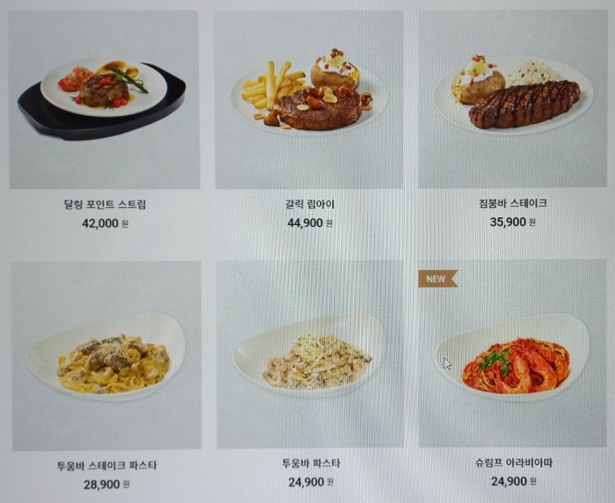 주문을 하고 메뉴판을 직원에게 바로 줘버리는 바람에 사진을 찍지 못해서 런치메뉴만 아웃백 홈페이지에서 찍어서 올렸어요~ㅠ