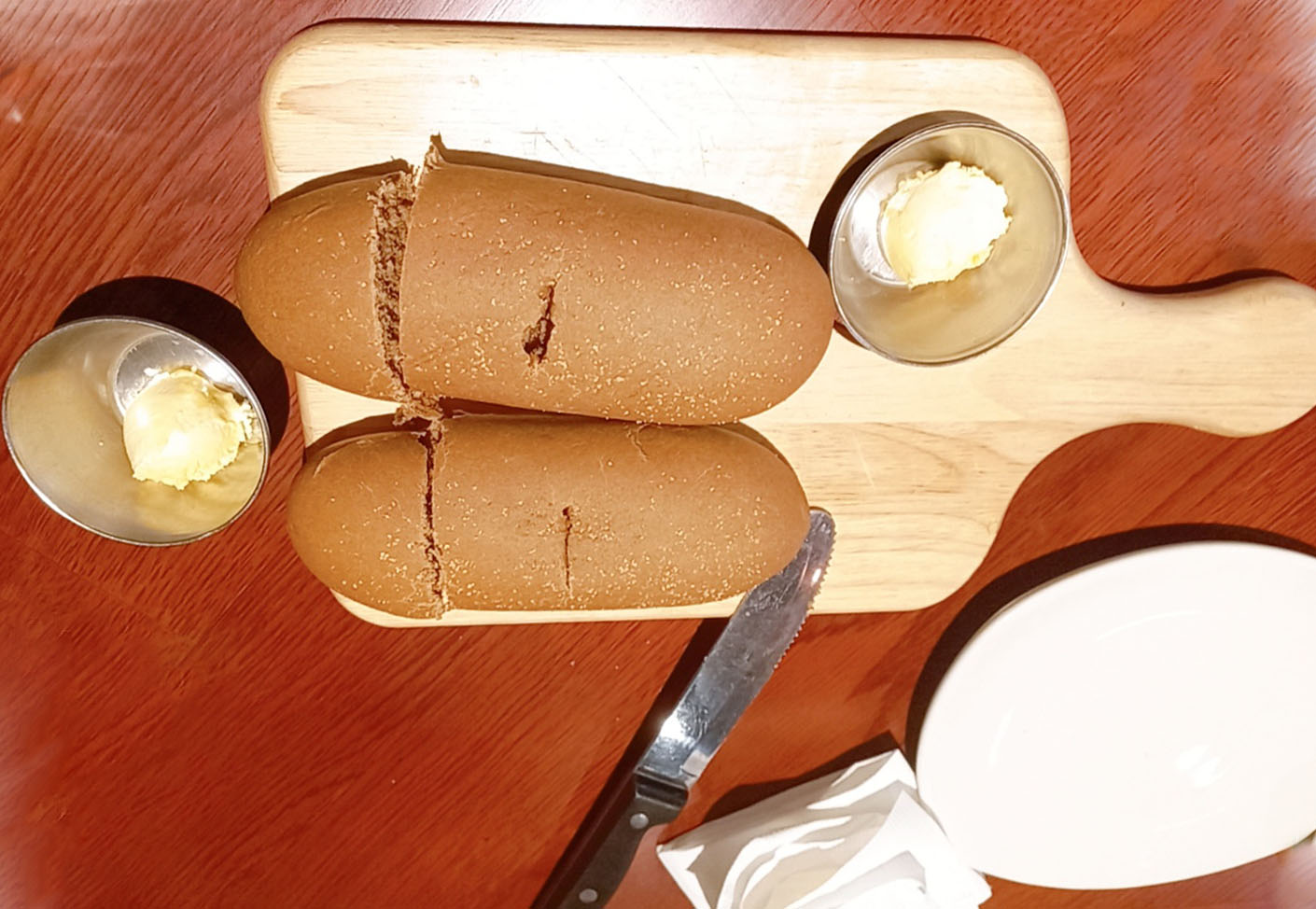 아웃백에서 빼놓을 수 없는 상징적인 부시맨 빵이에요~ 주문한 메뉴 나오기 전 제일 먼저 나오는 서비스 빵에 망고 스프레드 버터를 골고루 발라서 먹으면 언제 먹어도 늘 맛있는 빵이죠~