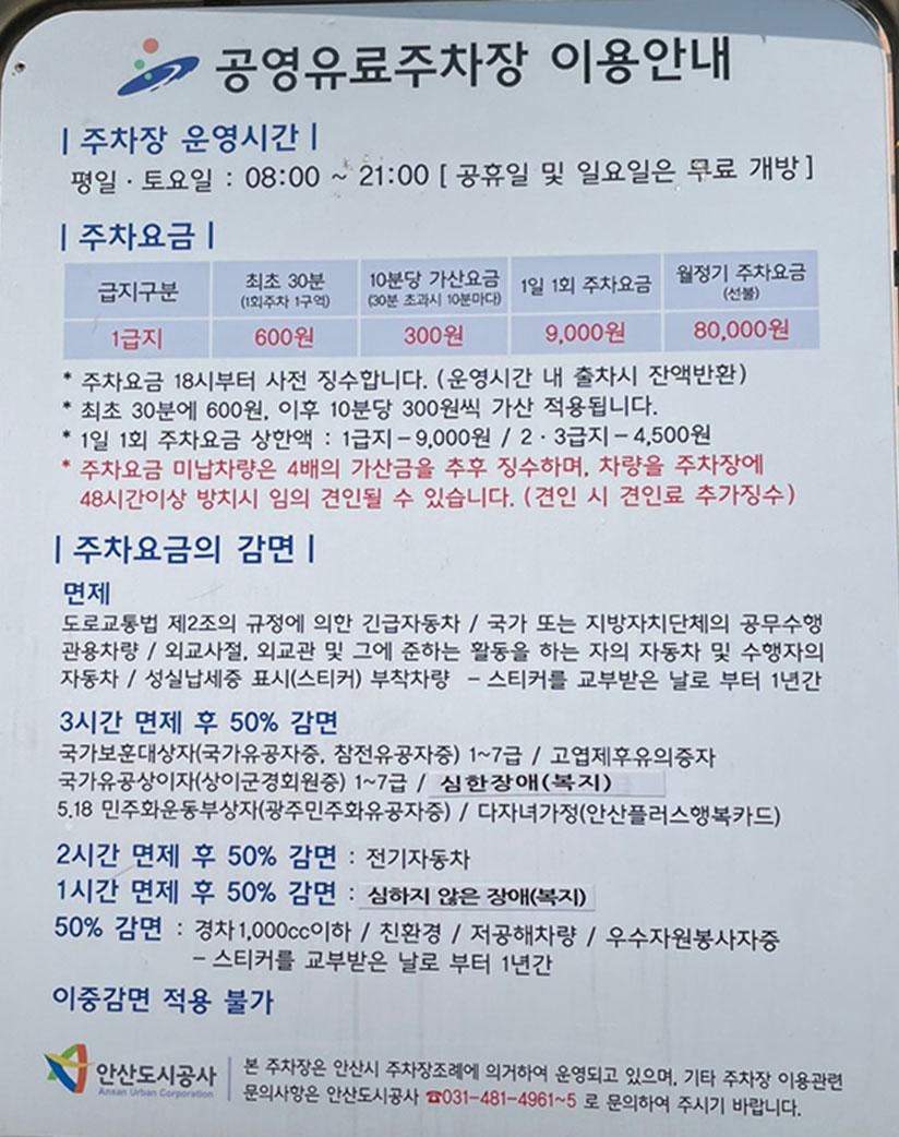 안산 공영 유료주차장이긴 하지만 다행히 공휴일과 일요일에는 무료개방을 하기 때문에 무료주차를 하고 식당으로 들어갔어요~