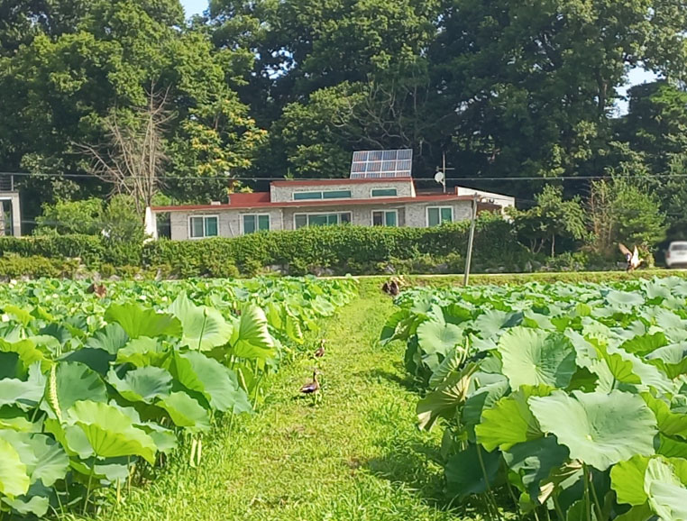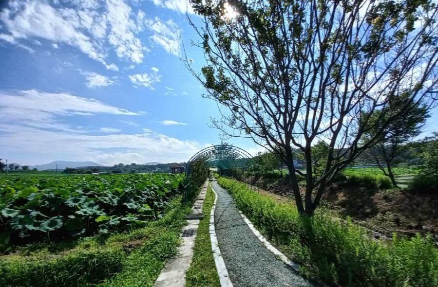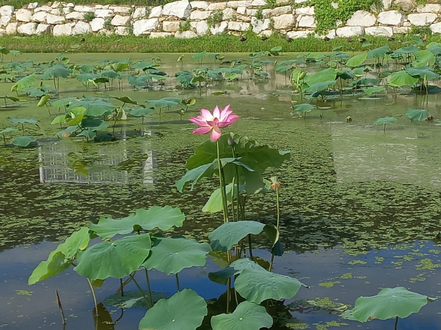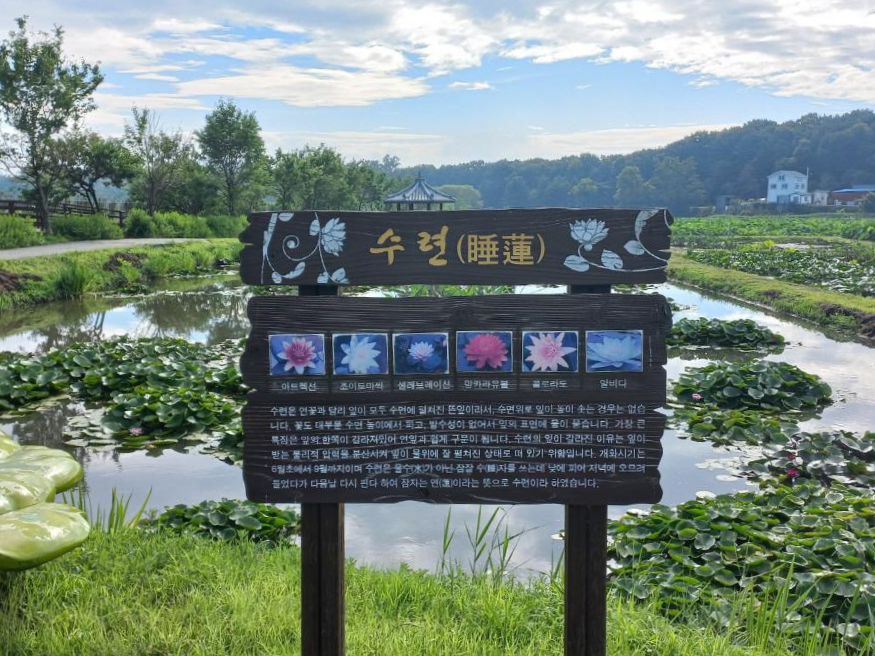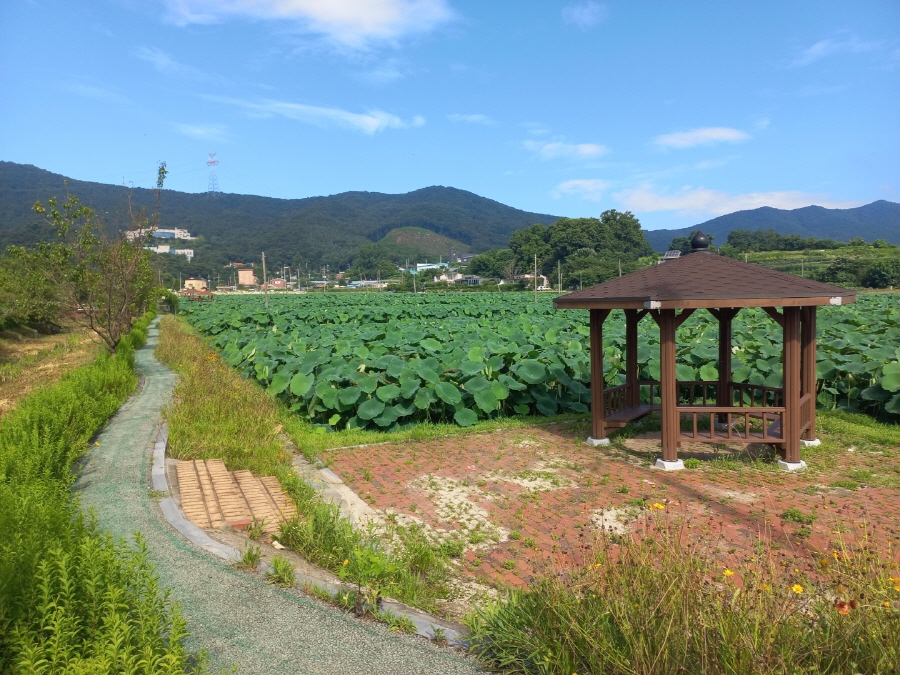 내동마을 연꽃단지는 총면적 8.2ha에 가람 백련 등 10여 종의 연과 수련 15종 등 다양한 수생식물과 초화류 단지로 조성되어 있답니다~
