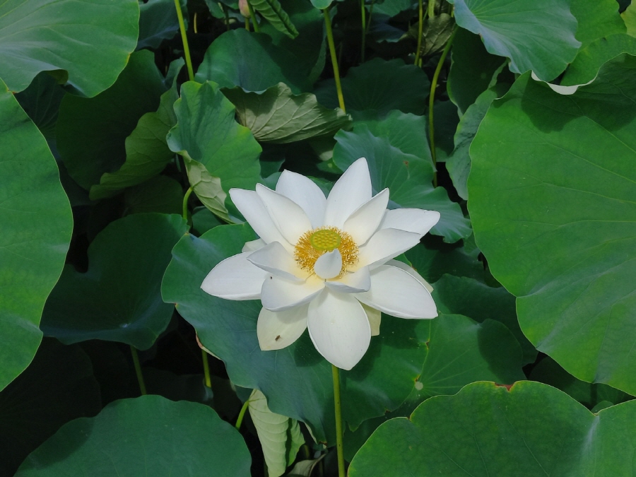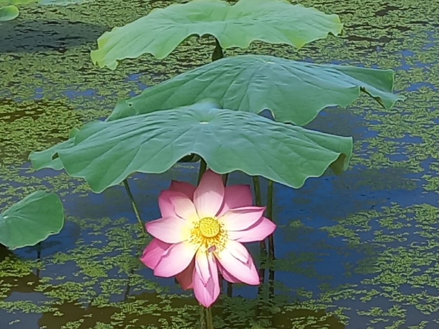 연꽃이 마치 연잎의 그늘 아래서 쉬고 있는 듯 보이네요~😊