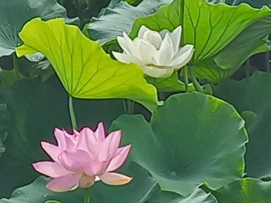 분홍색과 흰색 연꽃 모두 나름대로의 매력을 풍기고 있네요~