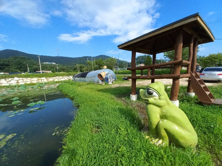 그동안 햇빛에 그을리고 비바람을 많이 맞아서 그런지 개구리 형상은 색이 벗겨진 곳이 드문드문 보이네요~ㅠ