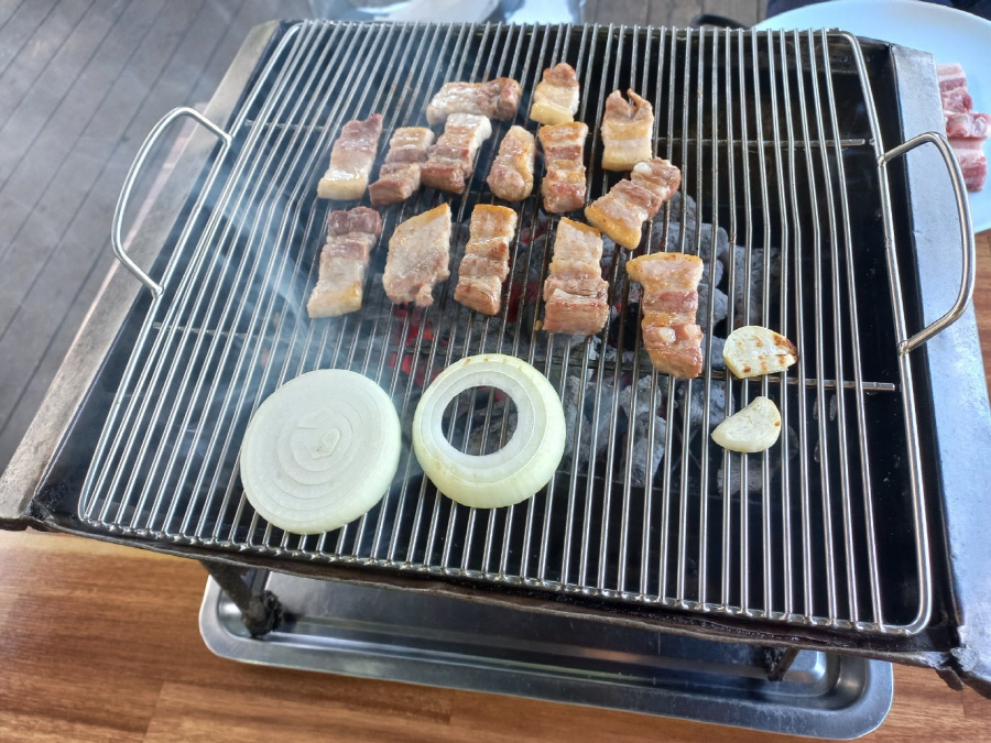 고기가 노릇노릇 맛있게 구워지고 있어요~😋