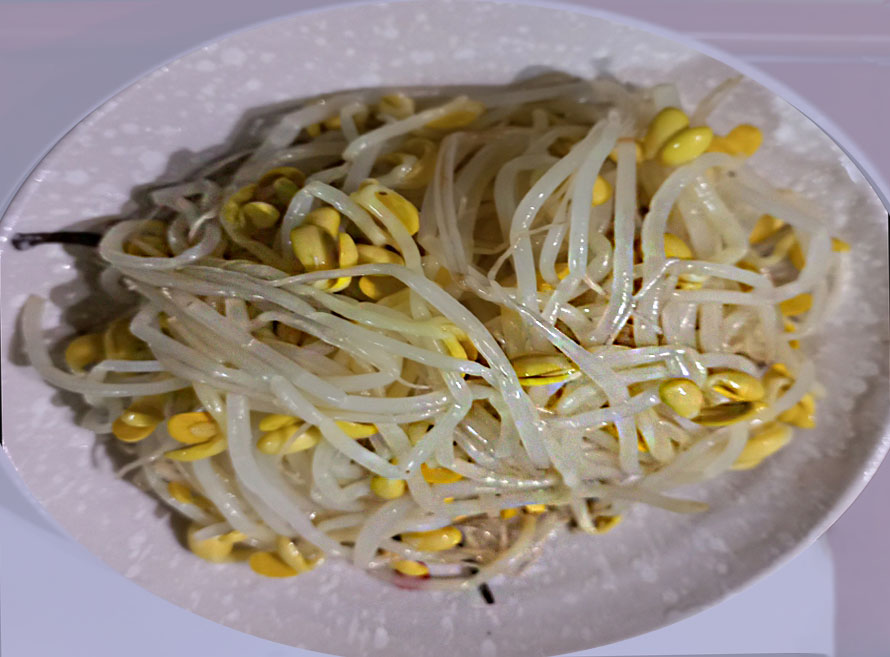 매운 낙지볶음과 함께 비벼먹기 좋게 콩나물은 전혀 간이 안되어 있고 삶기만 한 것 같아요~