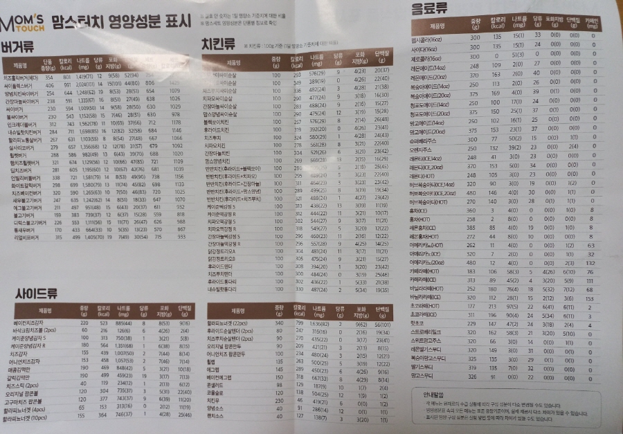 영양성분 표시가 되어 있는 용지도 주기 때문에 주문한 메뉴에 대한 자세한 사항을 알 수가 있어서 좋네요~