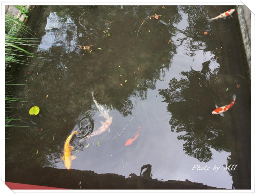 가는 길에 연못을 보니 다양한 색깔의 예쁜 물고기들이 보이네요~