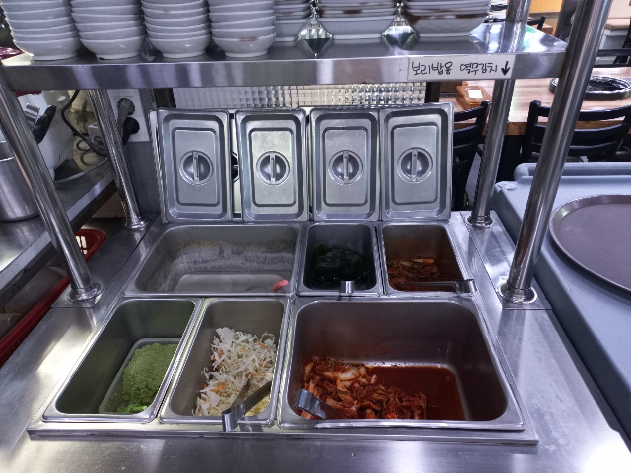 처음 반찬은 직접 가져다주시고 추가로 더 필요하신 분은 셀프바를 이용하시면 된답니다~