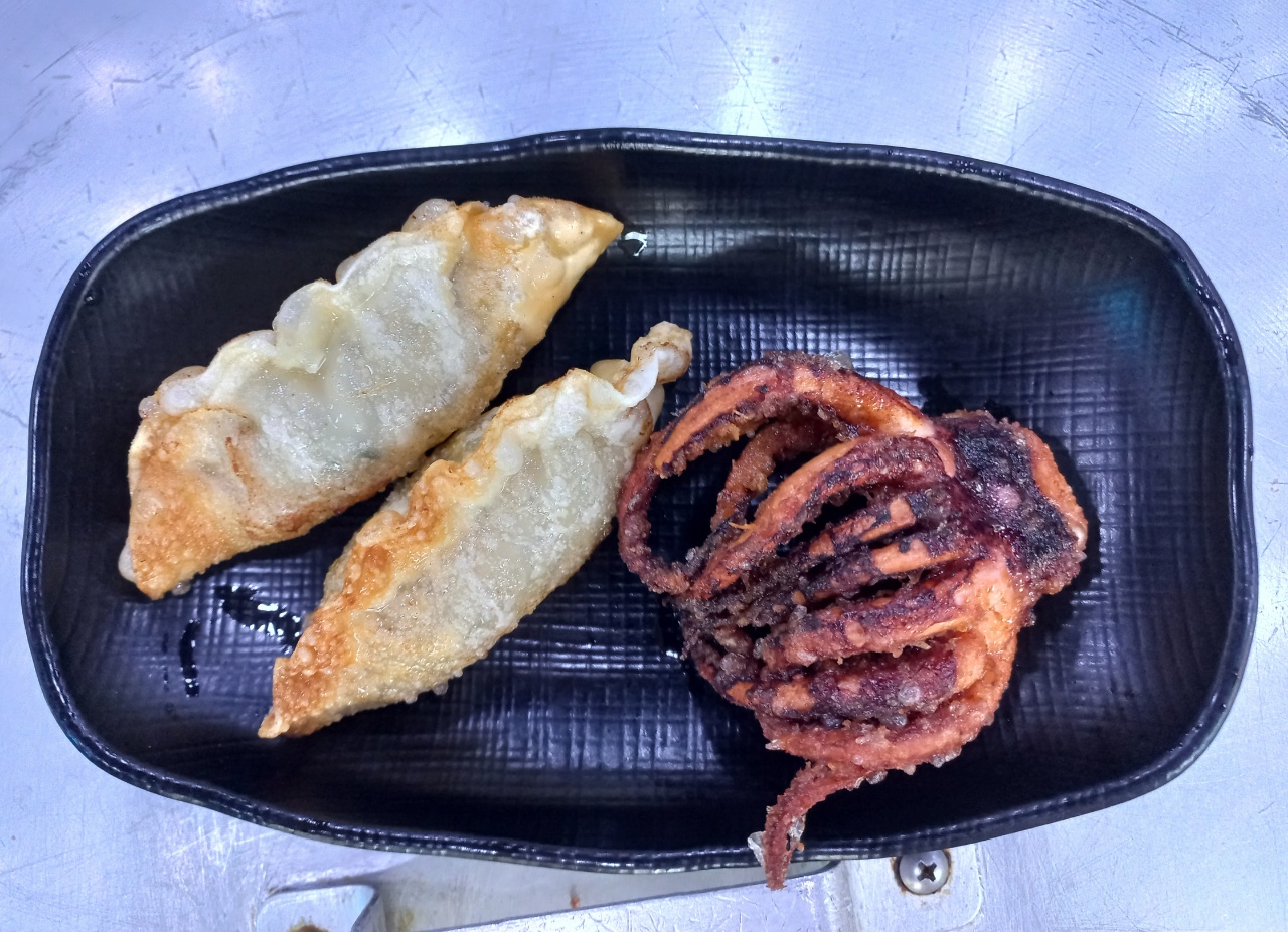 조개 전골이 끓기 전에 만두튀김과 오징어 다리만 튀긴 게 나오는데 바삭하니 정말 맛있어요~ 오징어 몸통은 조개 전골에 들어간답니다~