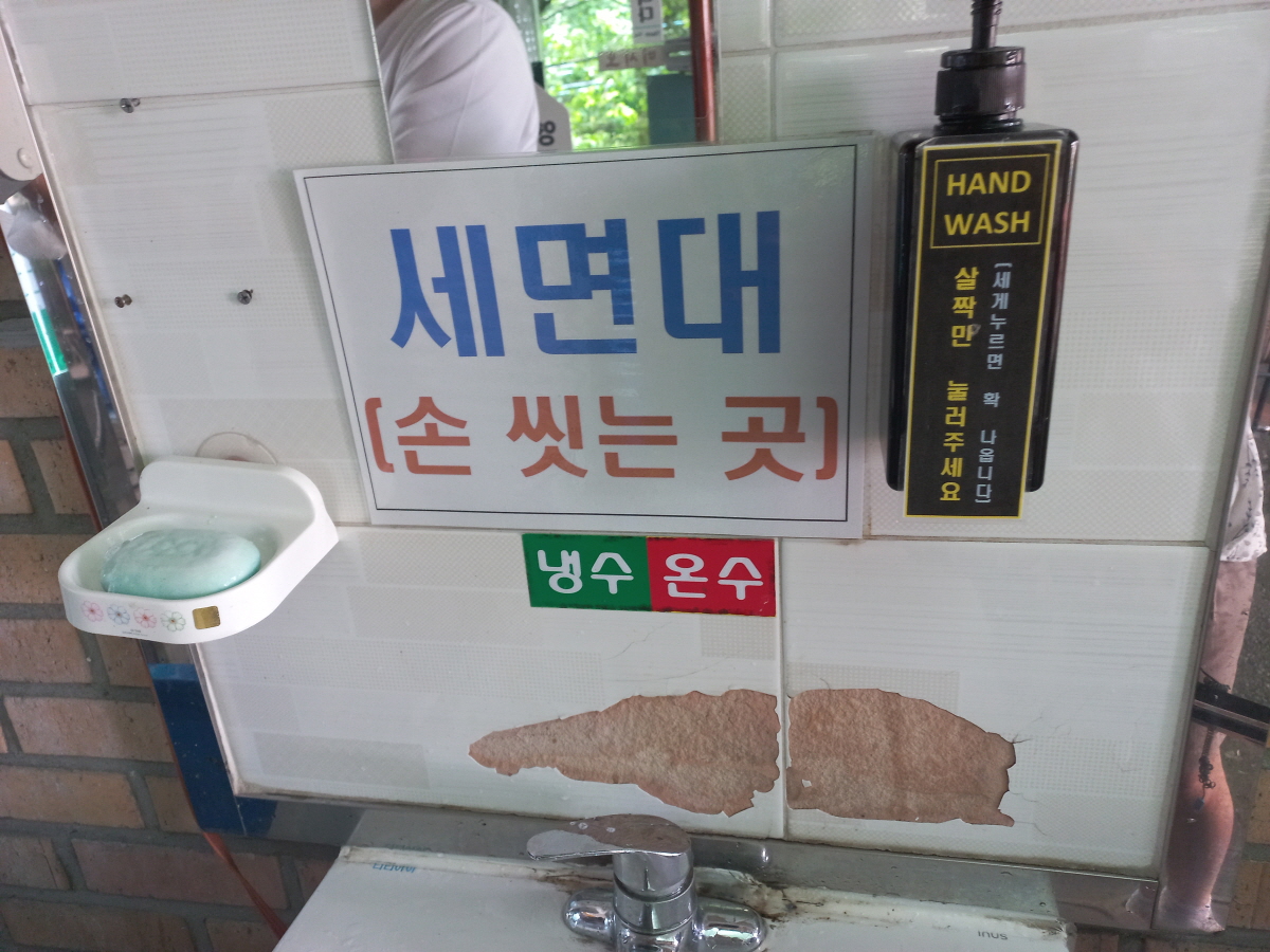 음식점 들어가기 전에 세면대가 있어서 너무 좋았어요~ 손세정제보다는 손을 씻는 게 더 위생적이니까요~