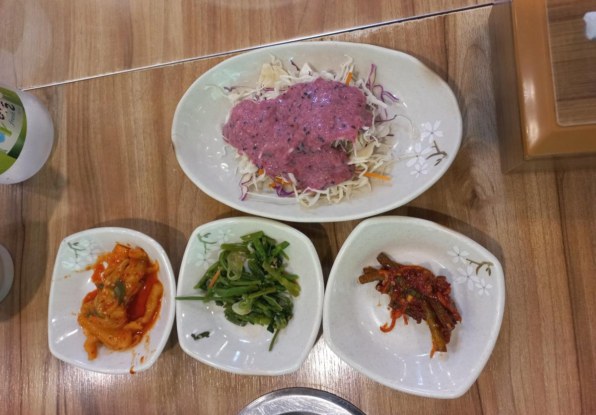 양배추 샐러드, 미나리 등 정말 다양하게 나오네요~ 하나하나 다 맛있더라고요~