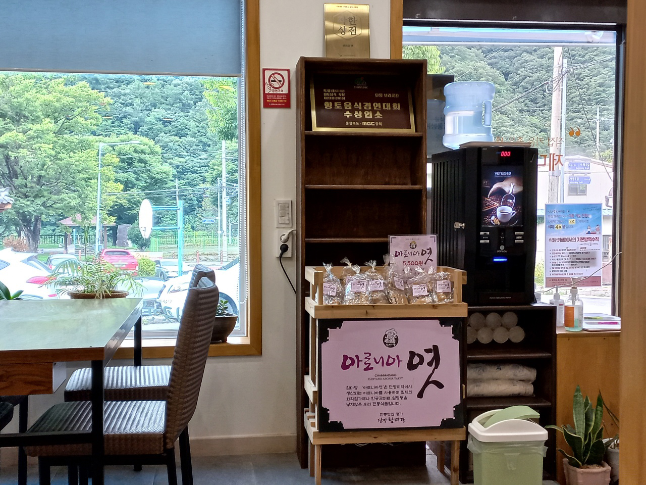 아로니아 엿도 판매를 하시네요. 단양의 특산물은 마늘이라고 알고 있는데 아로니아도 재배를 많이 하시는 것 같아요~ 숙소에서 음식점까지 오는 길에 보니 아로니아 판매하는 곳이 꽤 있더라고요~