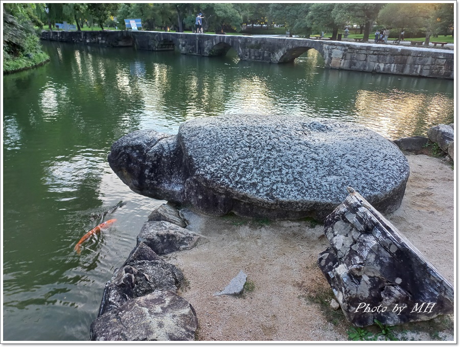재앙을 방지하기 위해 만들어진 자라 돌이 호수와 잘 어우러져 있어요~