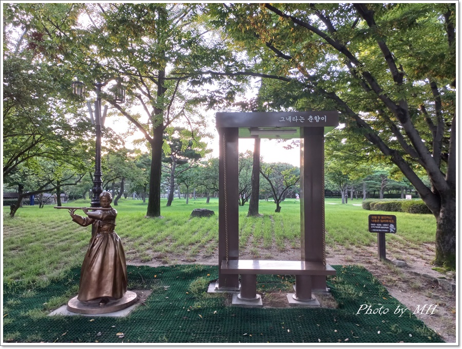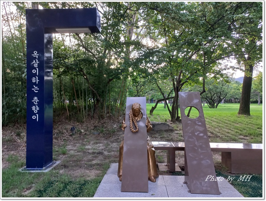 제일 먼저 춘향이와 이몽룡의 동상이 눈에 띄었어요~ 서로 바라보는 눈빛이 참으로 다정해 보이네요~😊