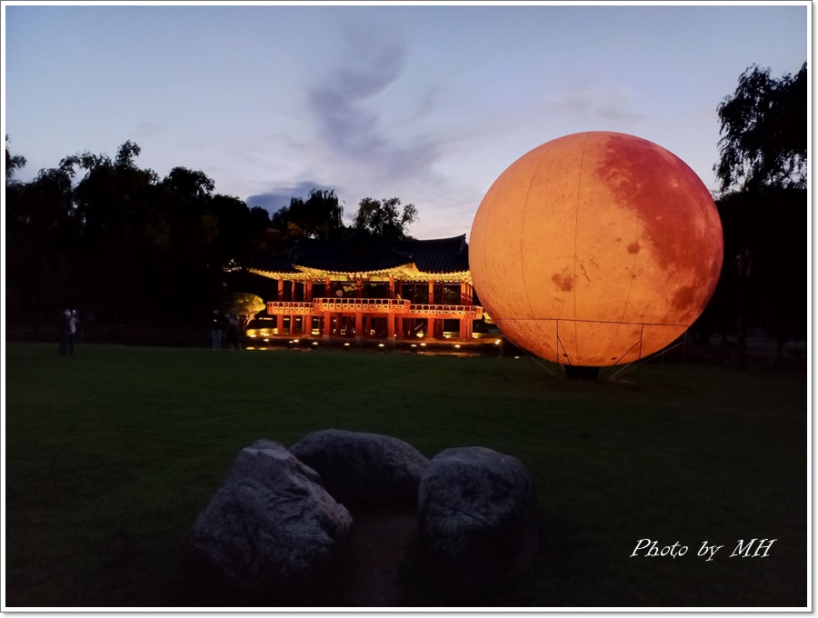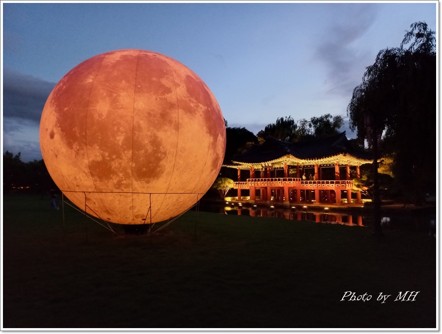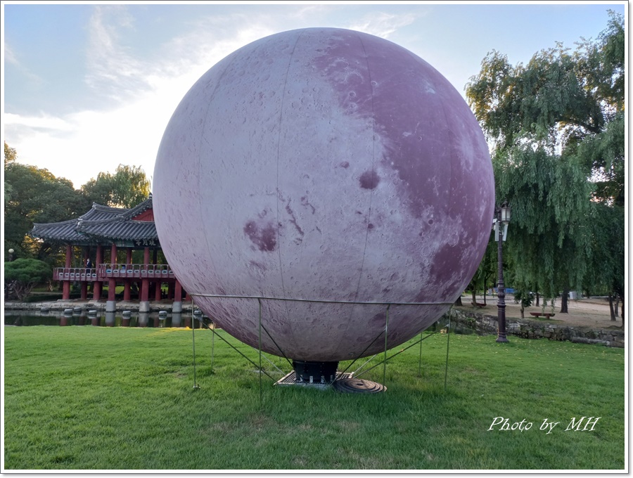 지상의 사람들이 천상의 세계를 꿈꾸며 달나라를 즐기기 위해 전통 조선식 누각을 세운 완월정이라 그런지 앞에 커다란 달을 형상화해 놓았네요~