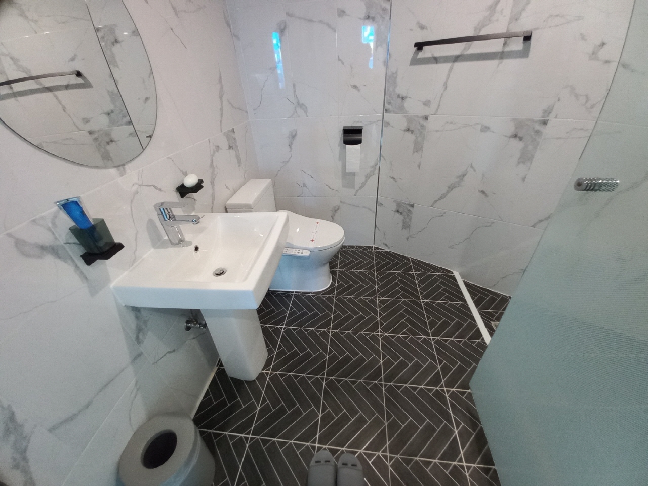 욕실 벽이 어둡지 않고 밝은 색상이라 좋았어요. 그래서 더 깔끔하게 보이더라고요~