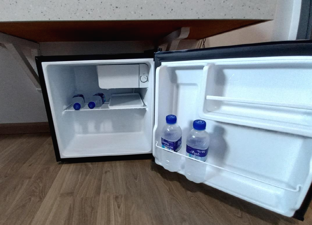 냉장고가 작지만 깔끔해서 좋네요~ 전기포트도 있어요. 여행을 갈 때마다 다음날 아침에 일어나면 커피 한잔 하면서 여유를 즐기는데 이날은 일찍 일어나서 지리산을 갔기 때문에 그럴 여유를 부리질 못했어요~ㅠ