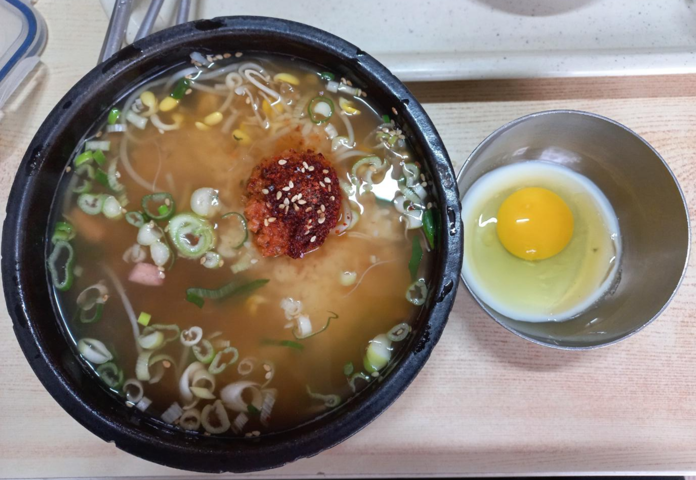 저희가 주문한 콩나물국밥은 저랑 신랑 모두 순한맛으로 주문했어요~ 수란도 함께 나왔어요~