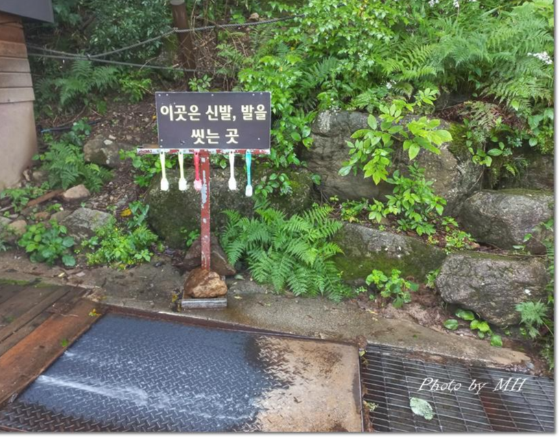 화장실 물도 산에서 내려오는 물을 이용하고 신발을 씻을 수 있는 이곳도 물을 재활용해서 쓰니까 좋은데요~ 저희도 이곳에서 신발을 씻었답니다. 신발 솔도 있어서 편리하네요~