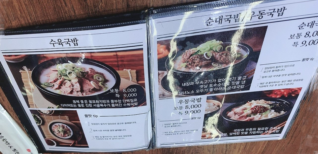 그래서 수육국밥 특 하나와 순대국밥 보통 하나를 주문 했답니다.