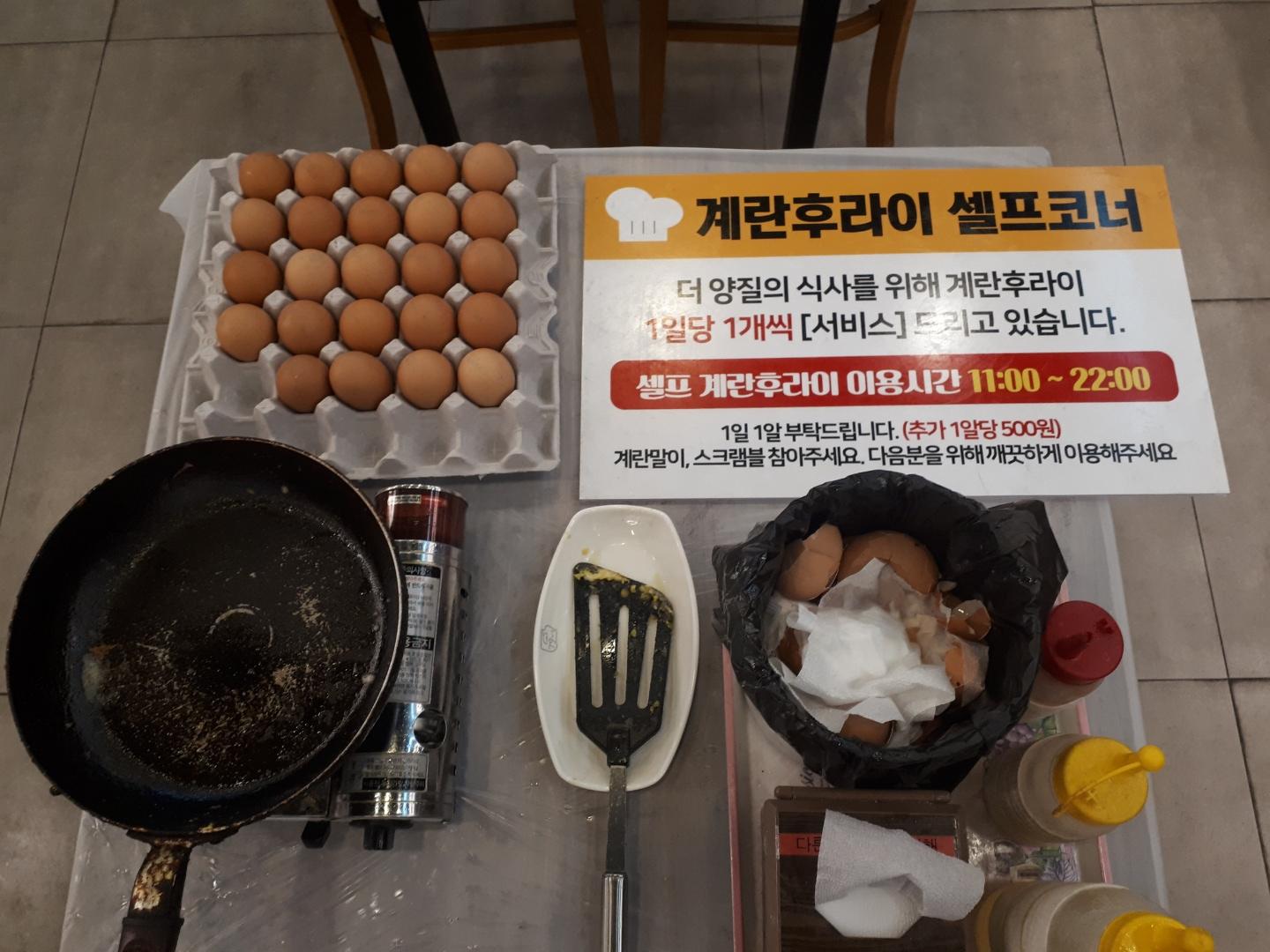 계산할 때 보니까 카운터쪽에 계란후라이 셀프코너가 있더라고요.