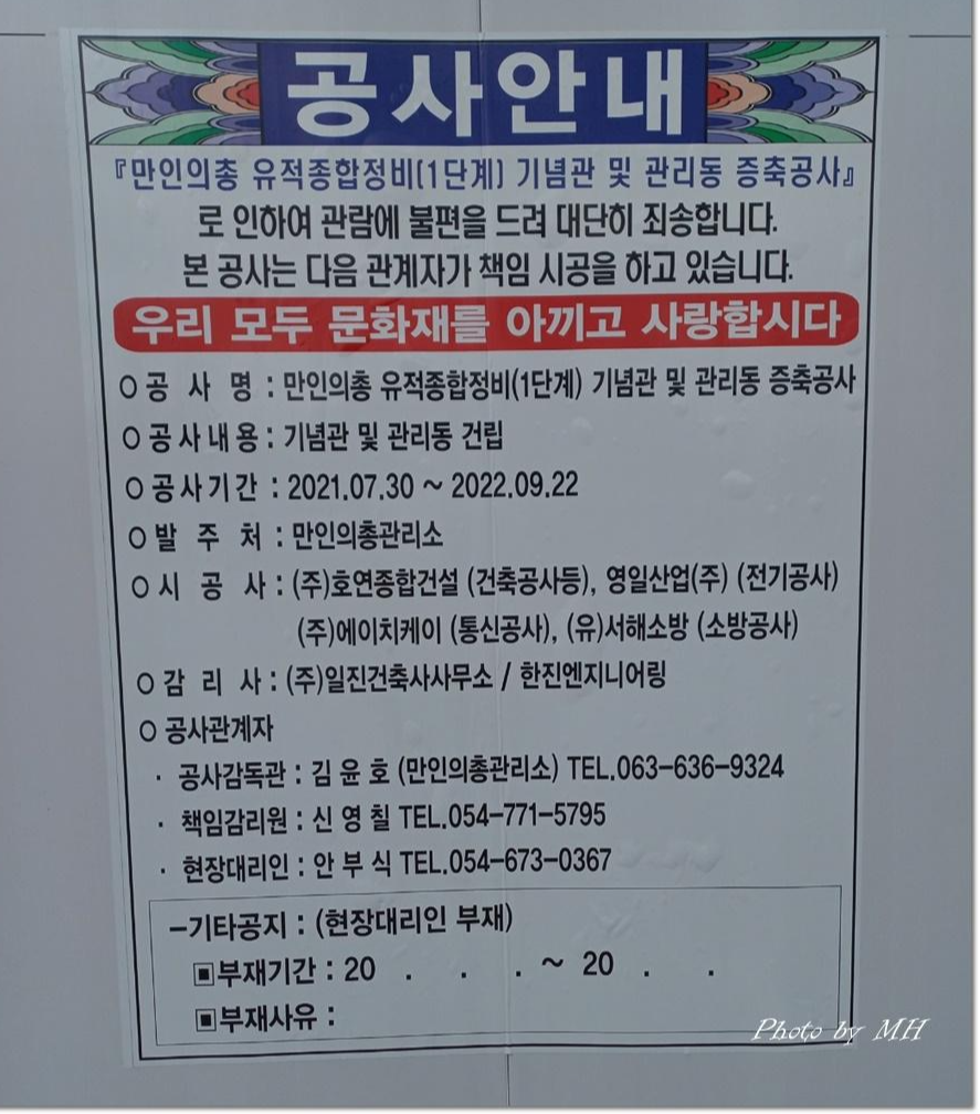 기념관 및 관리동 증축공사를 내년 9월 22일까지 하네요~ 공사가 끝난 후에 이곳을 방문하게 되면 좀 더 많은 걸 관람할 수 있을 것 같아요~