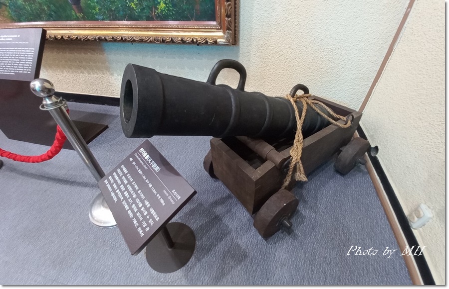 전투 시에 사용한 북인 전고, 창, 활, 성의 침입을 막기 위해 사용한 현재의 지뢰와 같은 무기들이 전시되어 있네요~