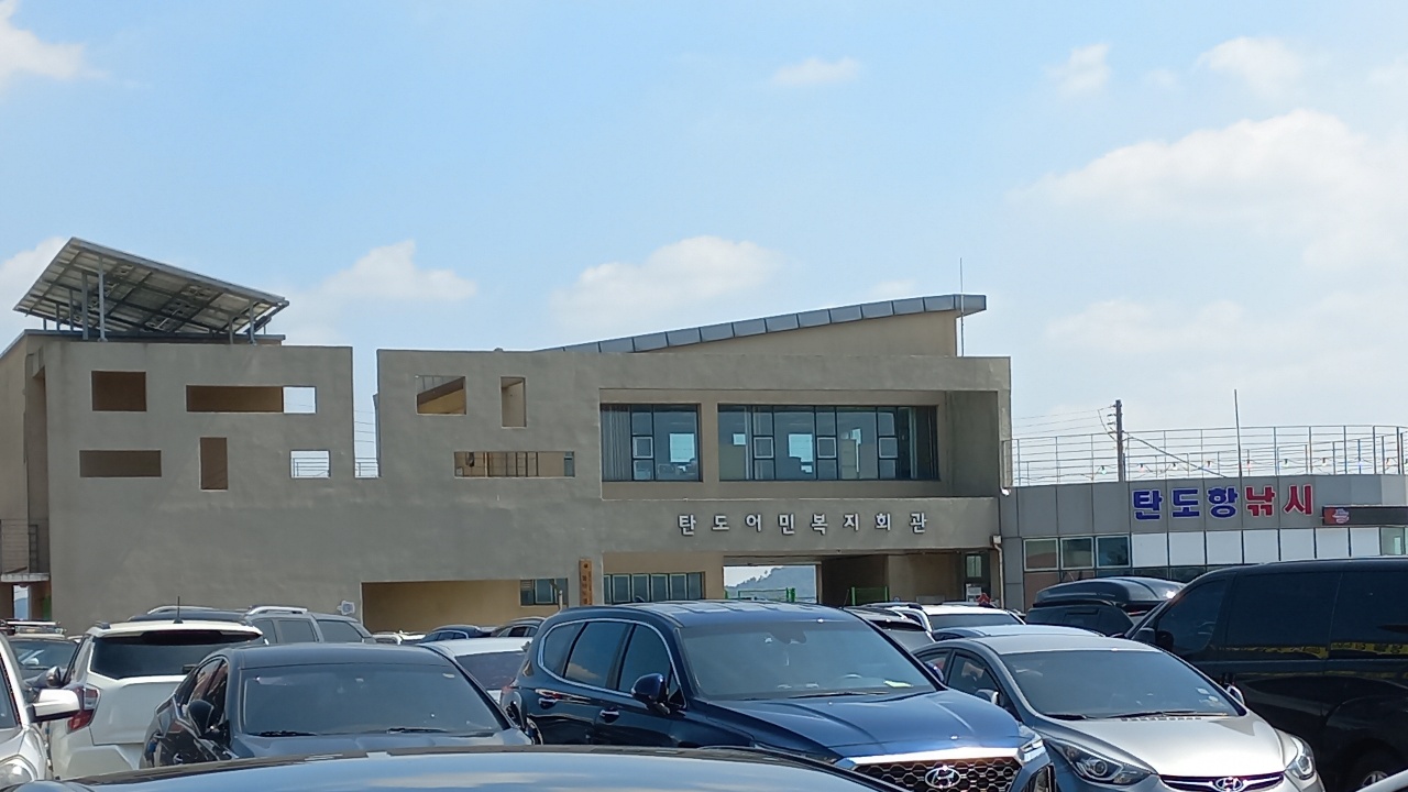 누에섬 등대 전망대 주차장인 탄도 어민복지회관 건물이 보이는 곳에 주차를 했어요~ 주차대수 넉넉하고 주차비는 무료네요~