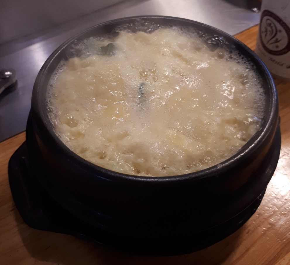 구운 김치와 곁들어 먹기 위해 주문한 공기밥과 된장찌개에요. 밥도 맛있고 찌개도 맛나네요.
