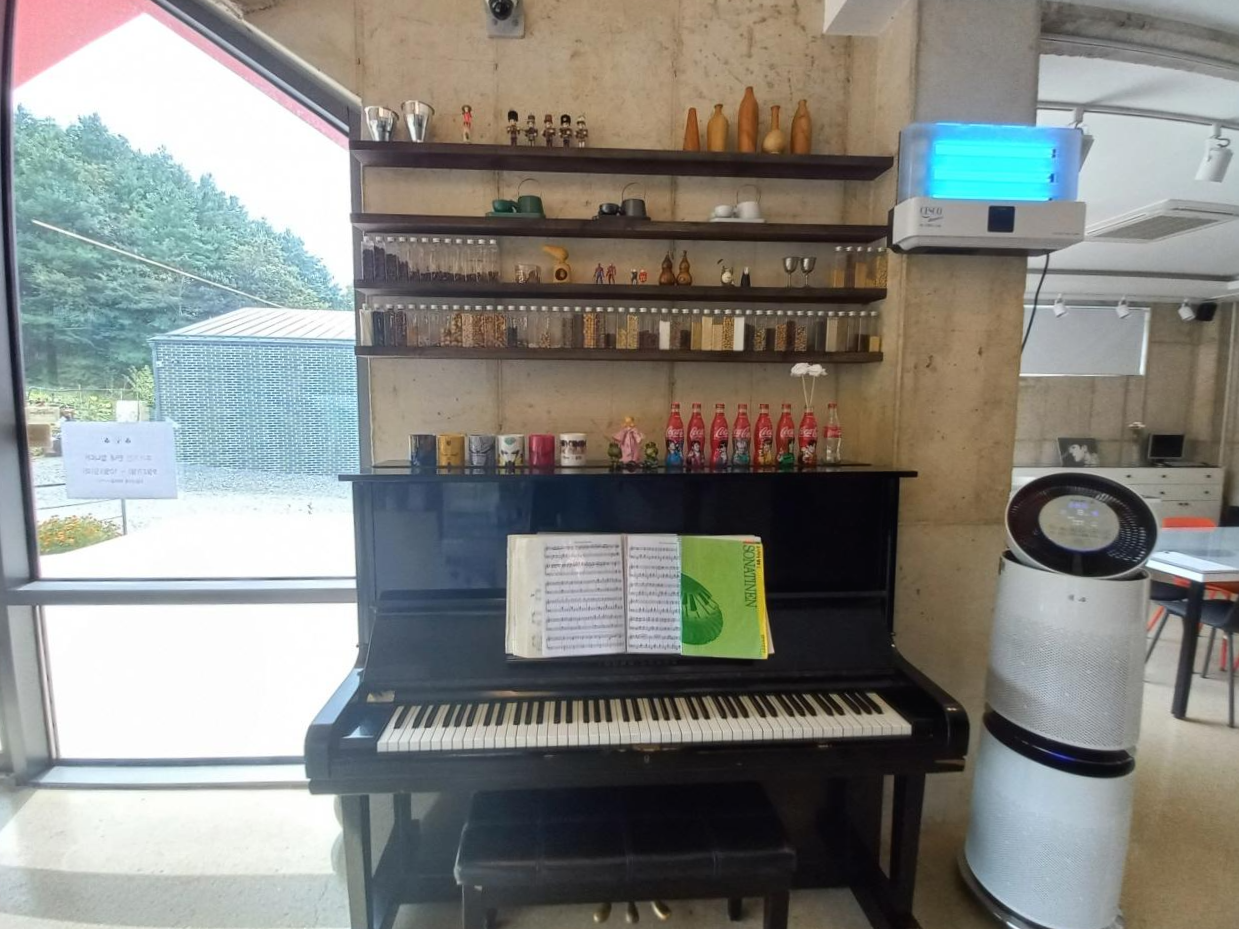 여러 장식들이 놓인 곳 아래에는 피아노도 놓여 있네요~