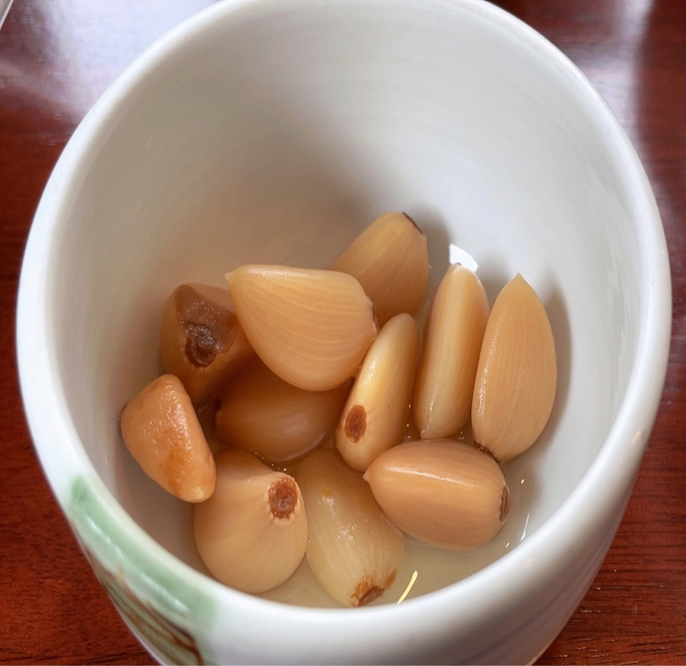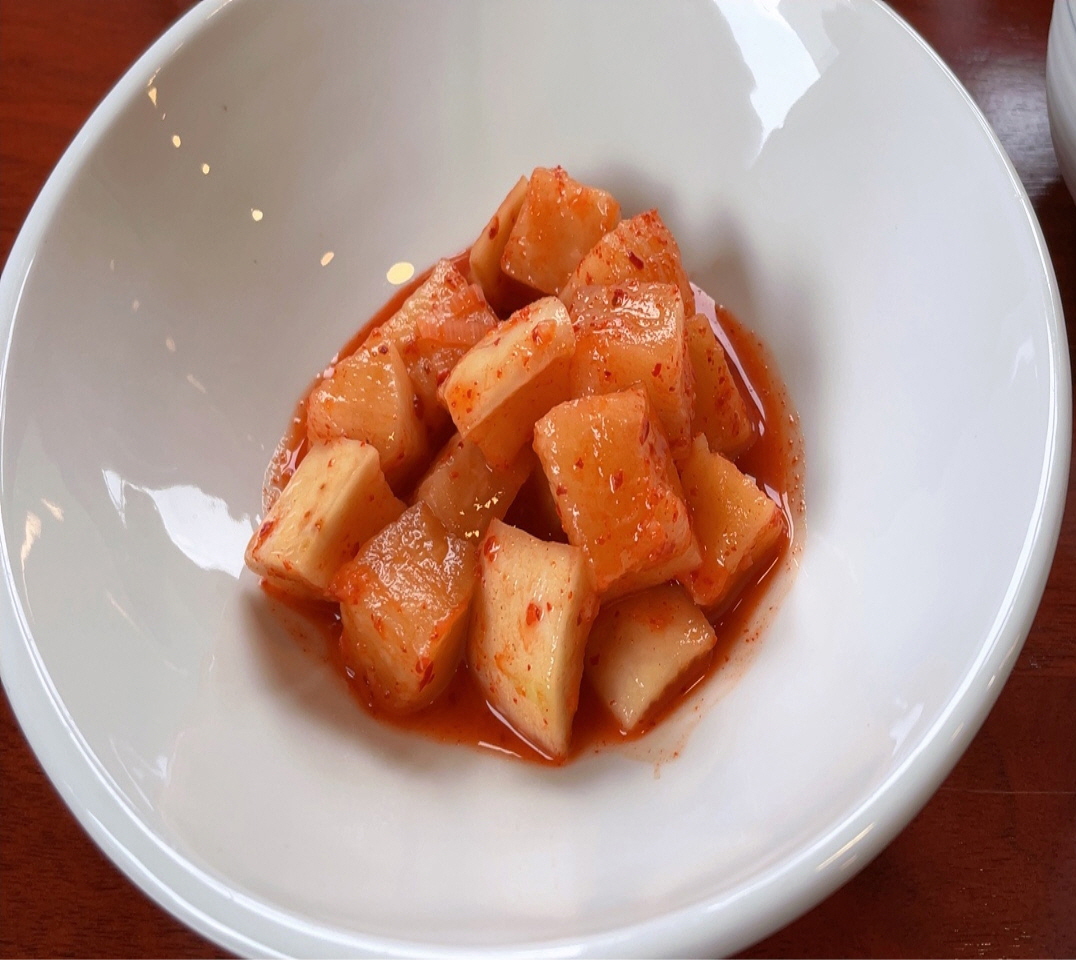 기본 밑반찬은 마늘장아찌랑 깍두기가 나왔어요~
