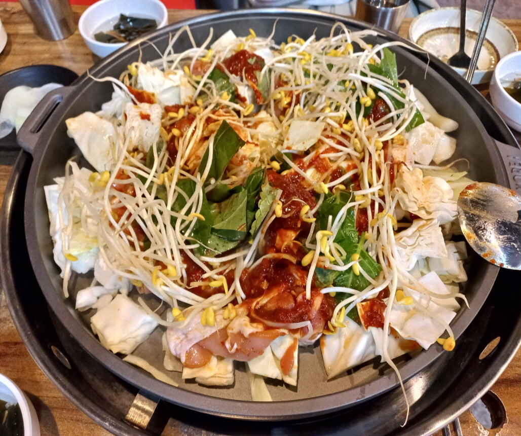 드디어 주문한 닭갈비 3인분(25,500원)과 모둠 사리(3,500원)가 나왔어요~