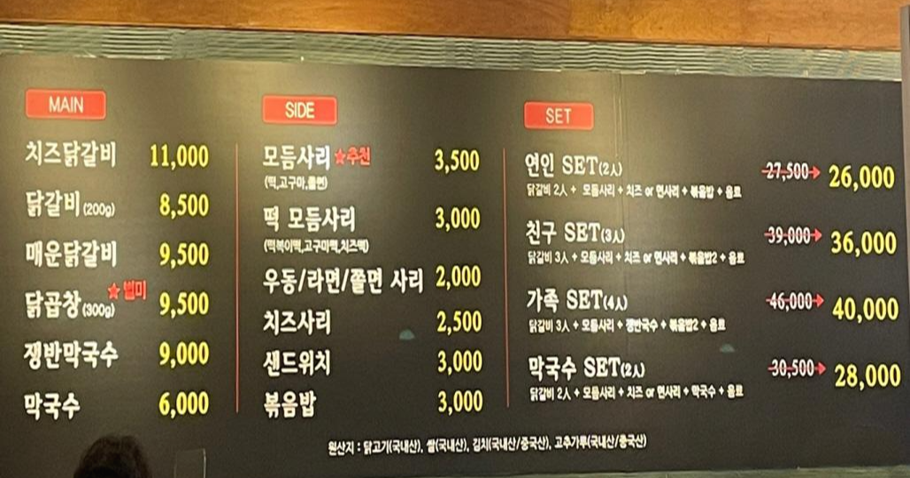 저희는 4인이 가서 닭갈비 3인분과 모둠 사리 하나를 추가했어요~ 볶음밥을 먹을 생각이라서 4인분을 주문하기에는 너무 많을 것 같더라고요~ 그래도 눈치 안 주시고 친절하게 대해 주시네요~
