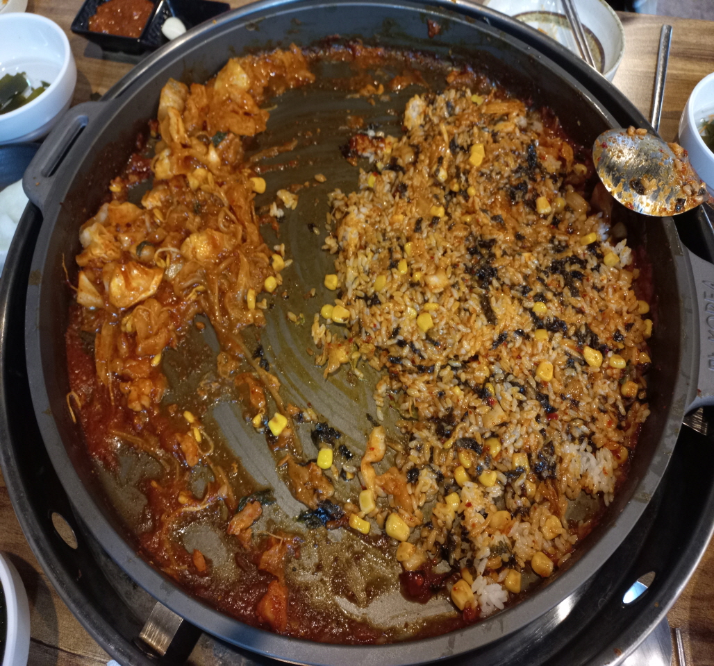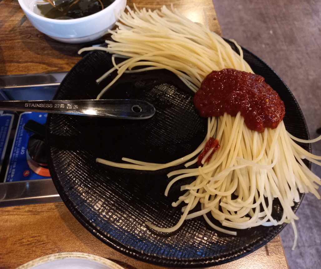 조리도구가 스테인리스라 철판이 많이 긁힐 것 같다는 생각이 들더라고요~ '나무주걱을 쓴다면 더 낫지 않을까'라는 생각이 들긴 했지만 직접 얘기하는 건 괜한 오지랖인 것 같아 속으로만 생각했답니다~😅