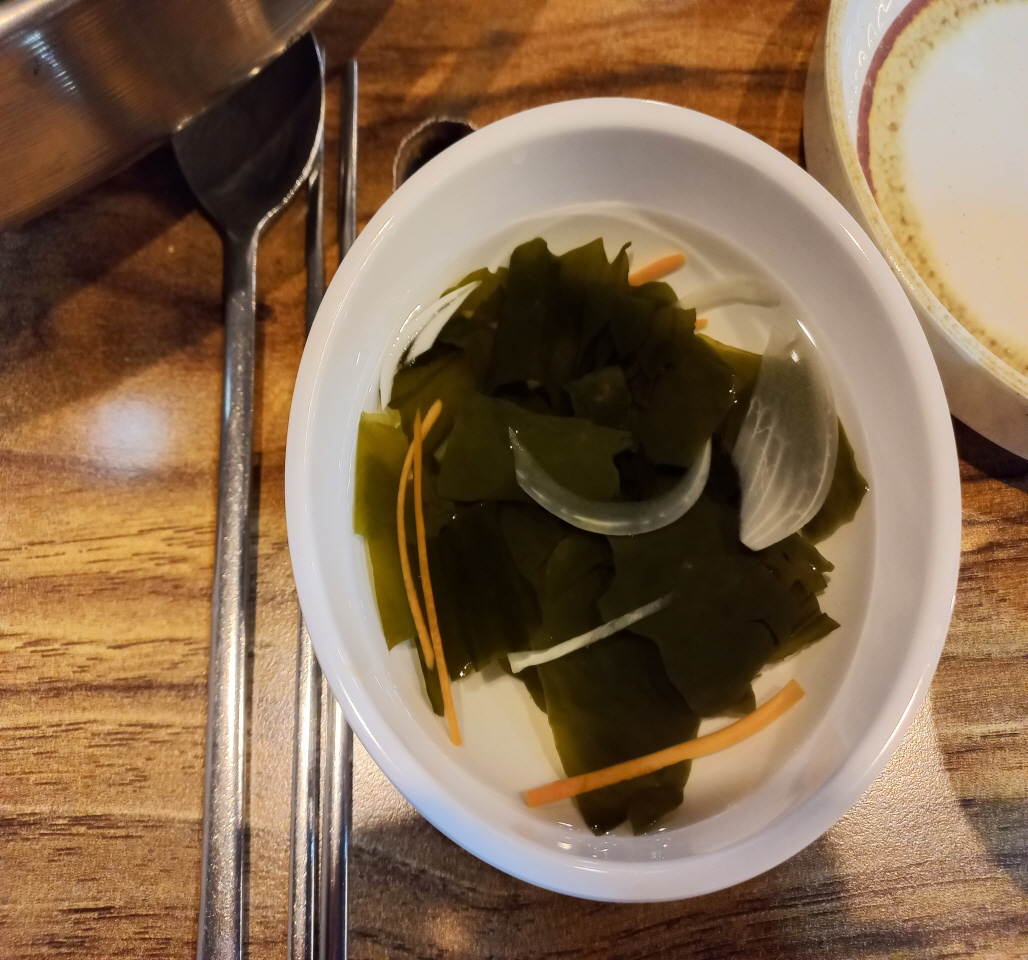 시원한 미역냉국을 마셔보니 시원하고 개운한 맛이네요~ 닭갈비를 싸 먹을 상추와 깻잎도 있고요~