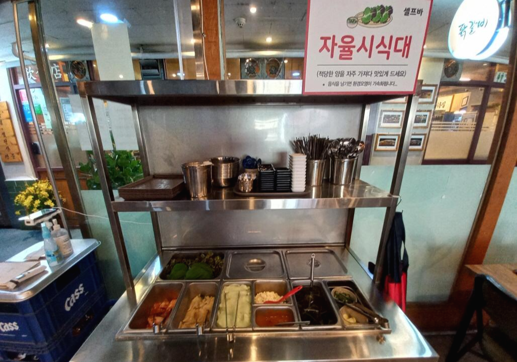 자율 시식 대도 있어서 부족한 반찬은 더 가져다 먹을 수 있어서 편해요~ 직원분께 반찬 더 달라고 하기보다는 셀프바가 있는 곳이 더 편하더라고요~
