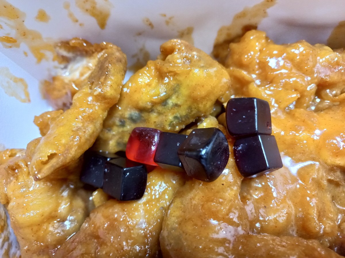 로젤킹 치킨에는 특이하게도 토핑이 젤리네요~