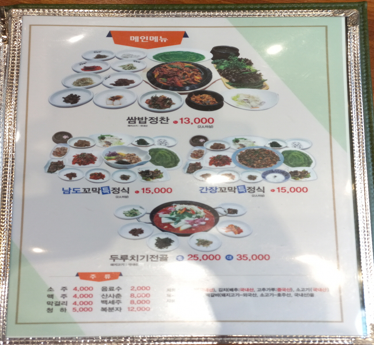 메뉴판에 음식 사진이 푸짐하니 다 맛있게 보이네요~