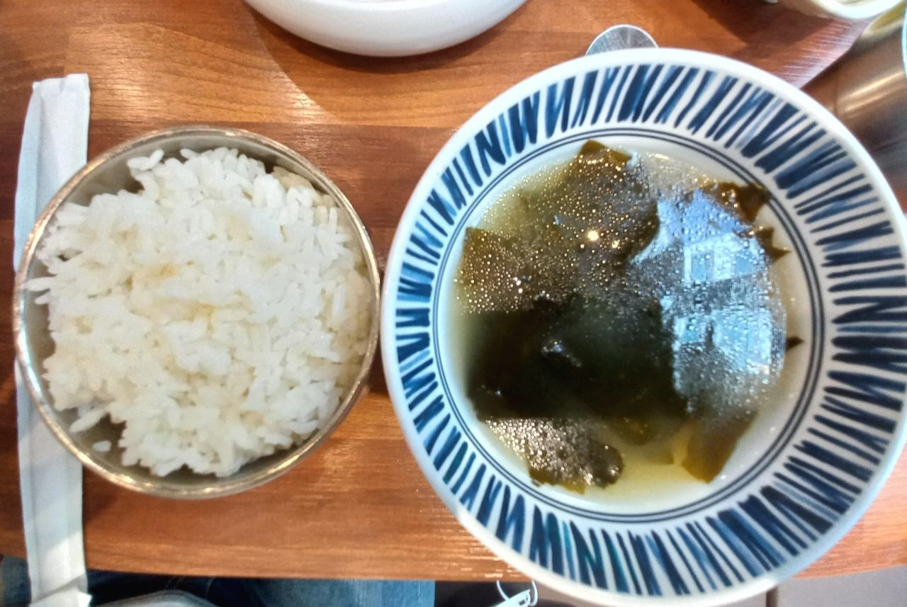 처음 미역국이 나왔을 때 소고기가 안 보여서 소고기 미역국이 맞나 했었는데, 소고기가 밑에 숨어 있더라고요~ㅎㅎ