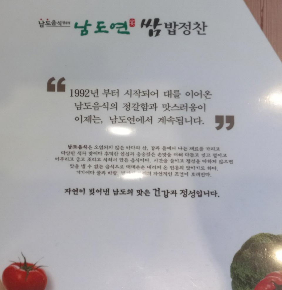 1992년부터 시작되어 대를 이어온 남도음식은 바다와 산, 강과 들에서 나는 재료를 가지고 손맛을 더해 다듬고 씻고 절이고 버무리고 굽고 조리고 식혀서 만든 정성 가득한 음식이라고 쓰여 있어서 기대가 되네요~
