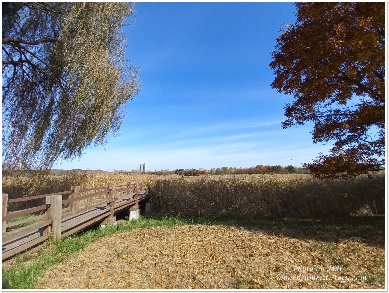 갈대도 풍성하고 각종 나무들은 울긋불긋 다양한 색으로 물들어 있어서 더없이 아름다워요~