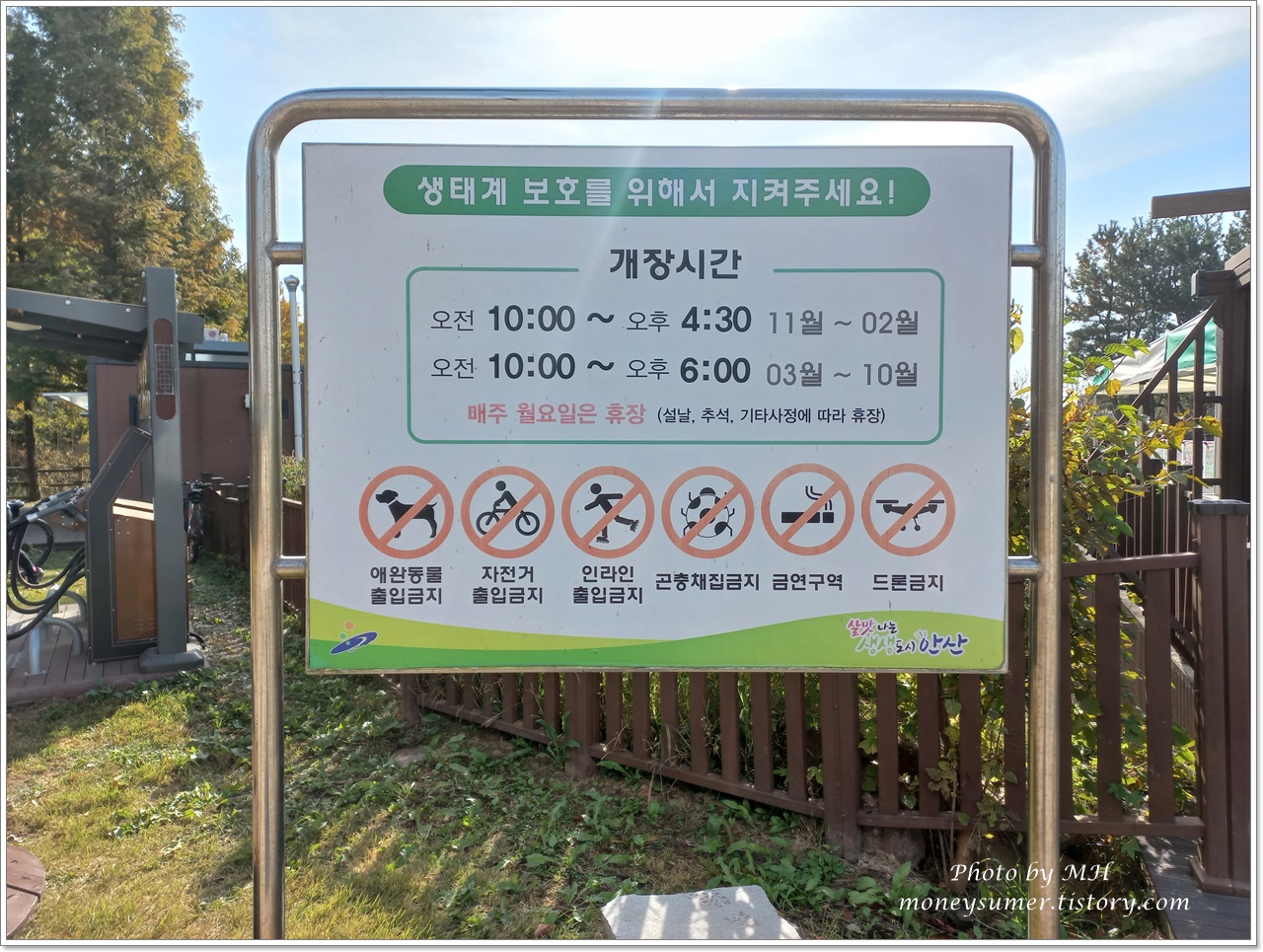 드디어 입장을 했어요~ 주차비와 입장료는 모두 무료랍니다. 자전거, 애완동물, 킥보드, 드론은 금지행위이니 참고하세요~