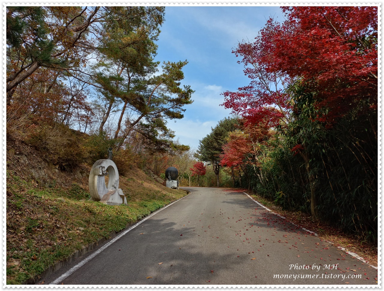 울긋불긋 물든 나무들도 구경하고 예술품들도 구경하면서 이 길을 따라 쭉 걸어봤어요~