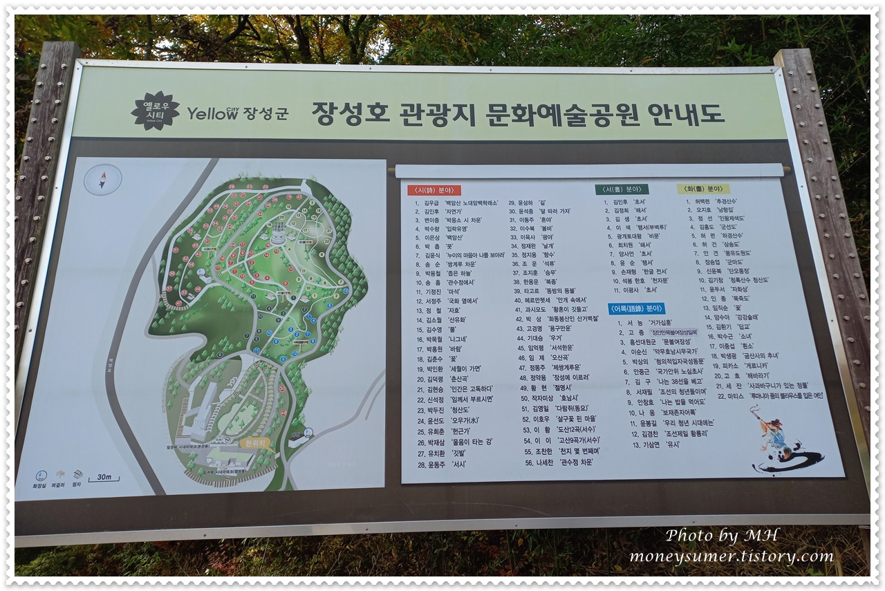 드넓은 장성호 관광지를 쭉 돌아보니 기분이 상쾌해지더라고요~ 다양한 시, 서, 화, 어록들과 조각상들을 구경할 수 있고