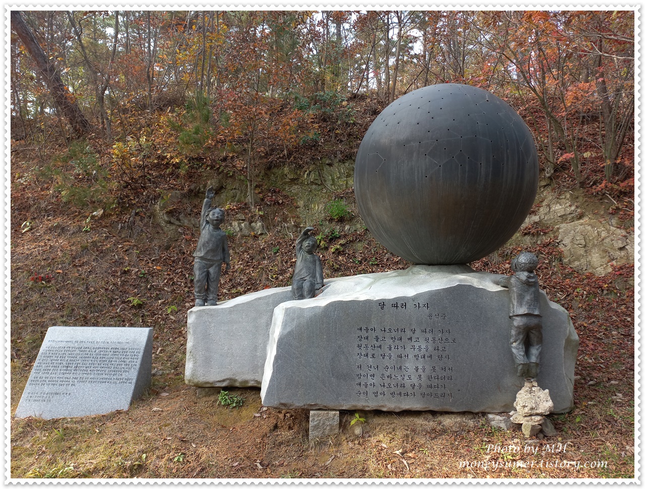 윤석중 '달 따러 가자'라는 시예요~ 아이들의 동상이 귀엽게 표현되어 있네요~ 특히 키가 닿지 않아 돌을 딛고 건너편을 바라보는 뒷모습의 아이가 너무 귀여운데요~😊