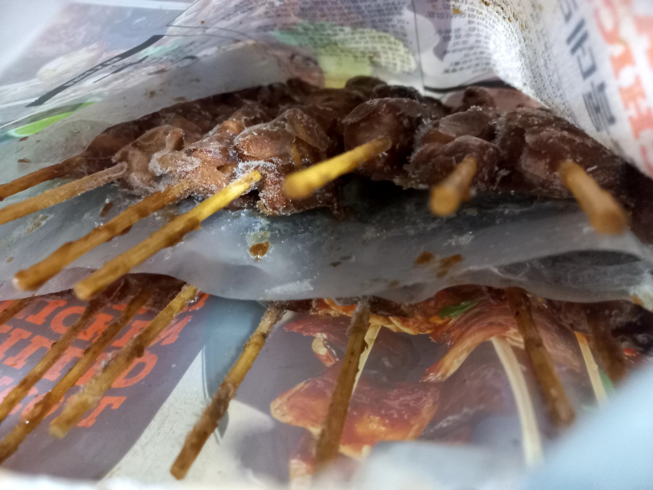 나무꼬치에 끝이 날카로우니 섭취 시 찔리지 않게 조심해야 해요~